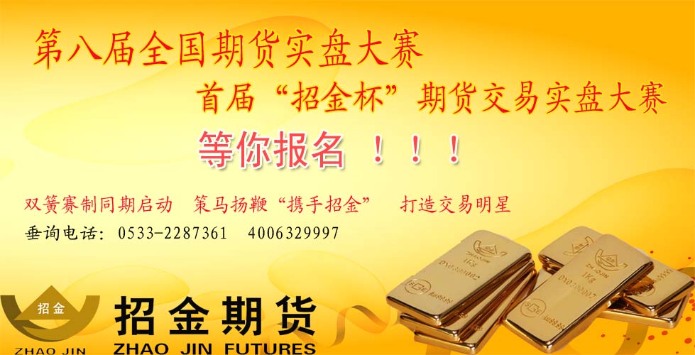 期貨日?qǐng)?bào)主辦的第八屆全國(guó)期貨實(shí)盤交易大賽3月28日開賽,招金期貨作為大賽指定的期貨通道平臺(tái),開戶即可免費(fèi)參加比賽,現(xiàn)有招金客戶可直接參賽。各種資金規(guī)模,各種交易方法給您充分展示的舞臺(tái)。首屆“招金杯”期貨交易實(shí)盤大賽也同步開賽。兩賽聯(lián)袂,一次報(bào)名即可同時(shí)參加,比賽實(shí)行雙重獎(jiǎng)金制度,全國(guó)實(shí)盤大賽總獎(jiǎng)金130萬(wàn),招金期貨總獎(jiǎng)金150克黃金!一次參賽,雙份獎(jiǎng)金,低門檻投入,高額回報(bào)。招金期貨將竭誠(chéng)為參賽者提供報(bào)名、咨詢、指導(dǎo)等各項(xiàng)服務(wù),幫您實(shí)現(xiàn)冠軍夢(mèng),歡迎各位投資者積極參與!