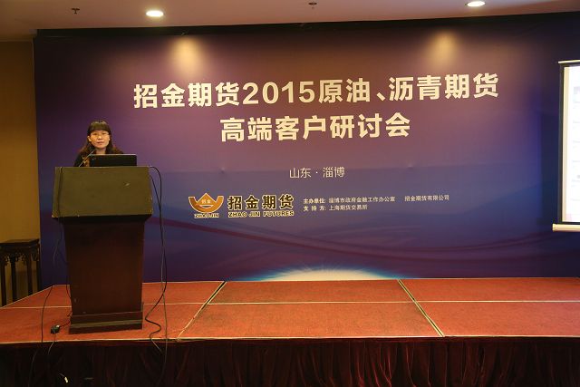 2015年1月10日上午9點(diǎn),招金期貨2015原油、瀝青期貨高端客戶(hù)研討會(huì)在山東淄博藍(lán)海國(guó)際酒店成功舉辦。本次會(huì)議由淄博市政府金融工作辦公室和招金期貨有限公司主辦,上海期貨交易所支持,淄博市政府金融工作辦公室領(lǐng)導(dǎo)和匯豐石化、金晶集團(tuán)、道恩集團(tuán)、日升燃料等企業(yè)領(lǐng)導(dǎo)出席了會(huì)議,會(huì)議期間中國(guó)石油和化學(xué)工業(yè)聯(lián)合會(huì)信息與市場(chǎng)部副主任祝昉,招金期貨有限公司研究院李敏,山東清源集團(tuán)副總王芹分別就《2015原油供需價(jià)格再平衡與趨勢(shì)預(yù)測(cè)》、《原油、瀝青期貨上市及意義》、《宏觀經(jīng)濟(jì)下的期現(xiàn)套?!返确矫孀隽搜葜v,會(huì)議取得圓滿成功。