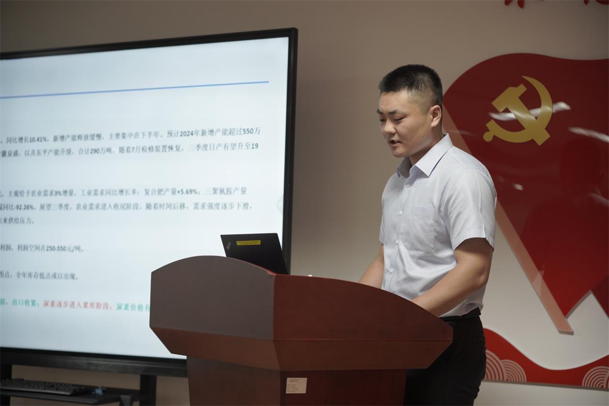 會議伊始,齊盛期貨董事長邢成亮致辭講話,首先對到場的嘉賓表示最由衷的感謝和最熱烈的歡迎,并詳細(xì)介紹了公司歷史沿革、股東背景及業(yè)務(wù)發(fā)展情況。他強(qiáng)調(diào),齊盛期貨將持續(xù)展現(xiàn)國企擔(dān)當(dāng),始終堅持以服務(wù)實體經(jīng)濟(jì)為宗旨,為實體企業(yè)發(fā)展持續(xù)賦能期貨力量。隨后齊盛期貨尿素研究員康見對當(dāng)前尿素市場的基本面進(jìn)行了全面而深入的剖析,涵蓋了供需態(tài)勢、價格變動趨勢、政策導(dǎo)向等多個方面,為與會企業(yè)提供了豐富且詳實的市場信息。