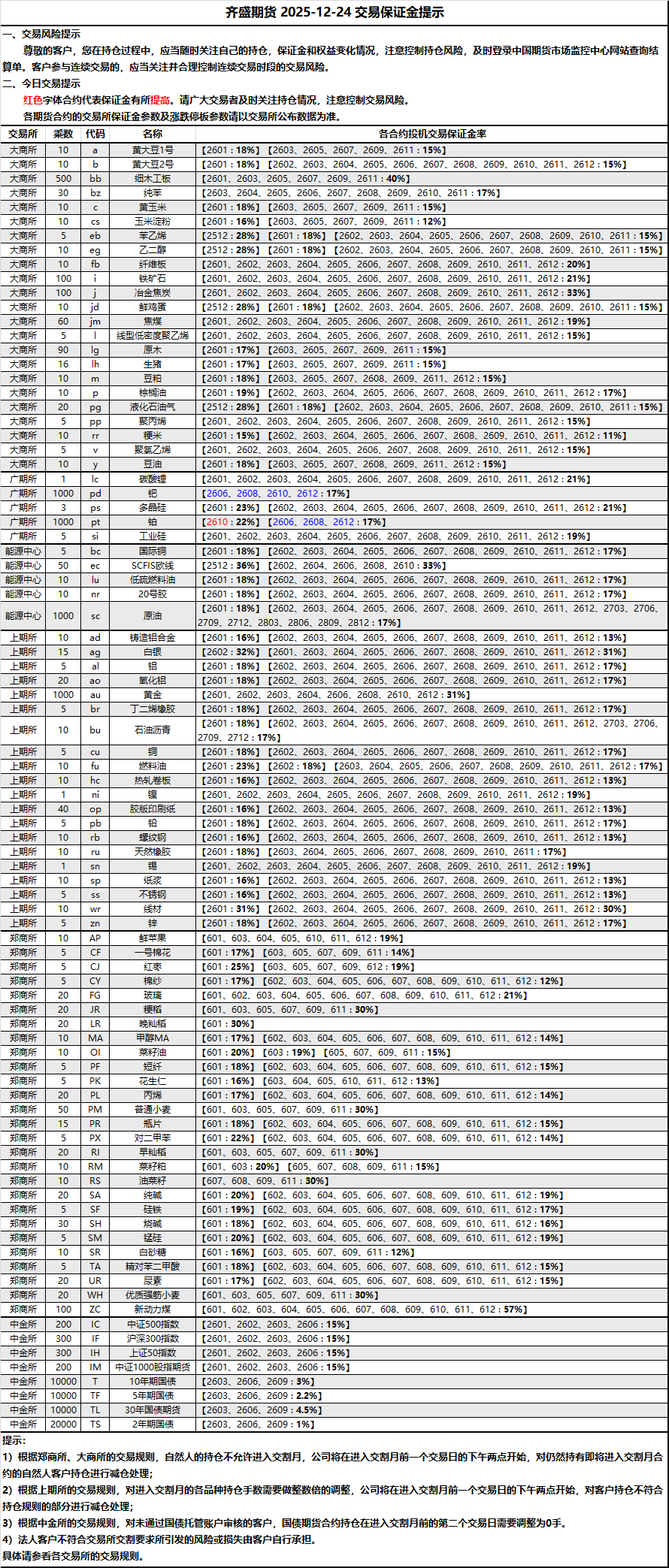 期貨交易風(fēng)險說明書