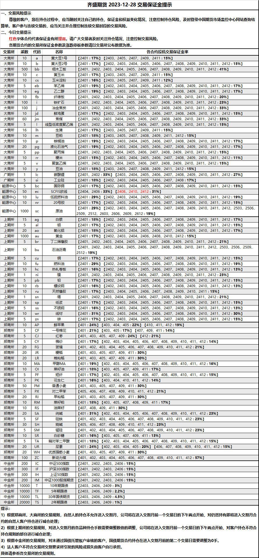 保證金提示