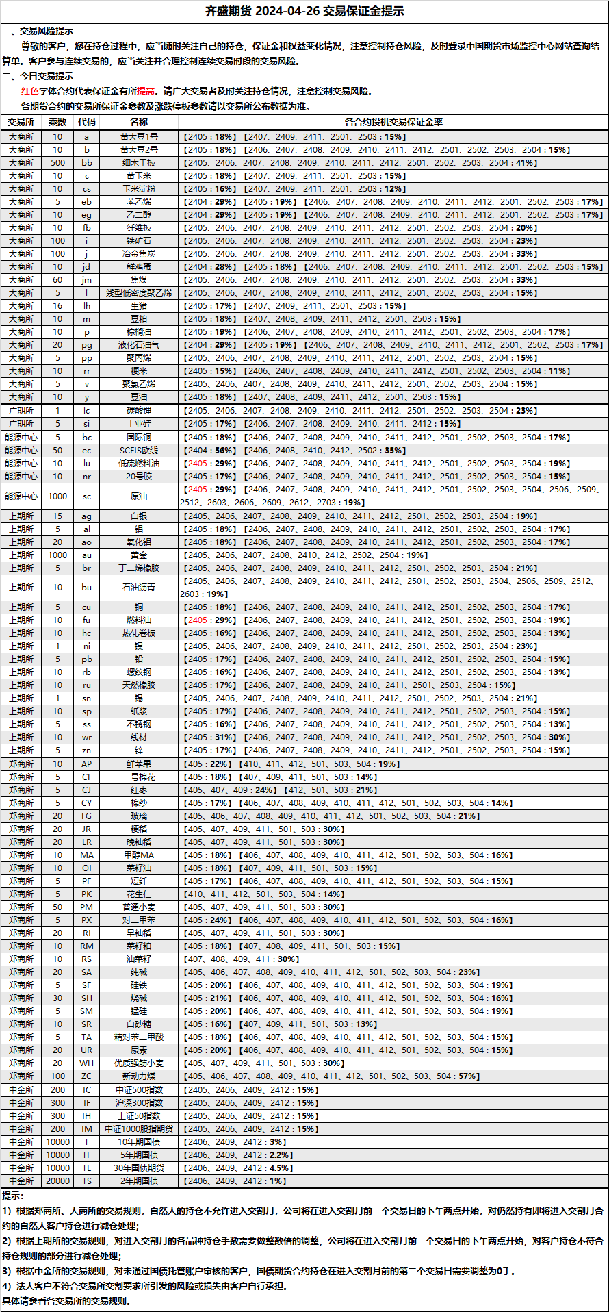 保證金提示