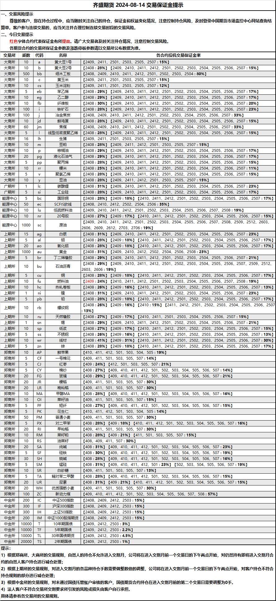 保證金提示