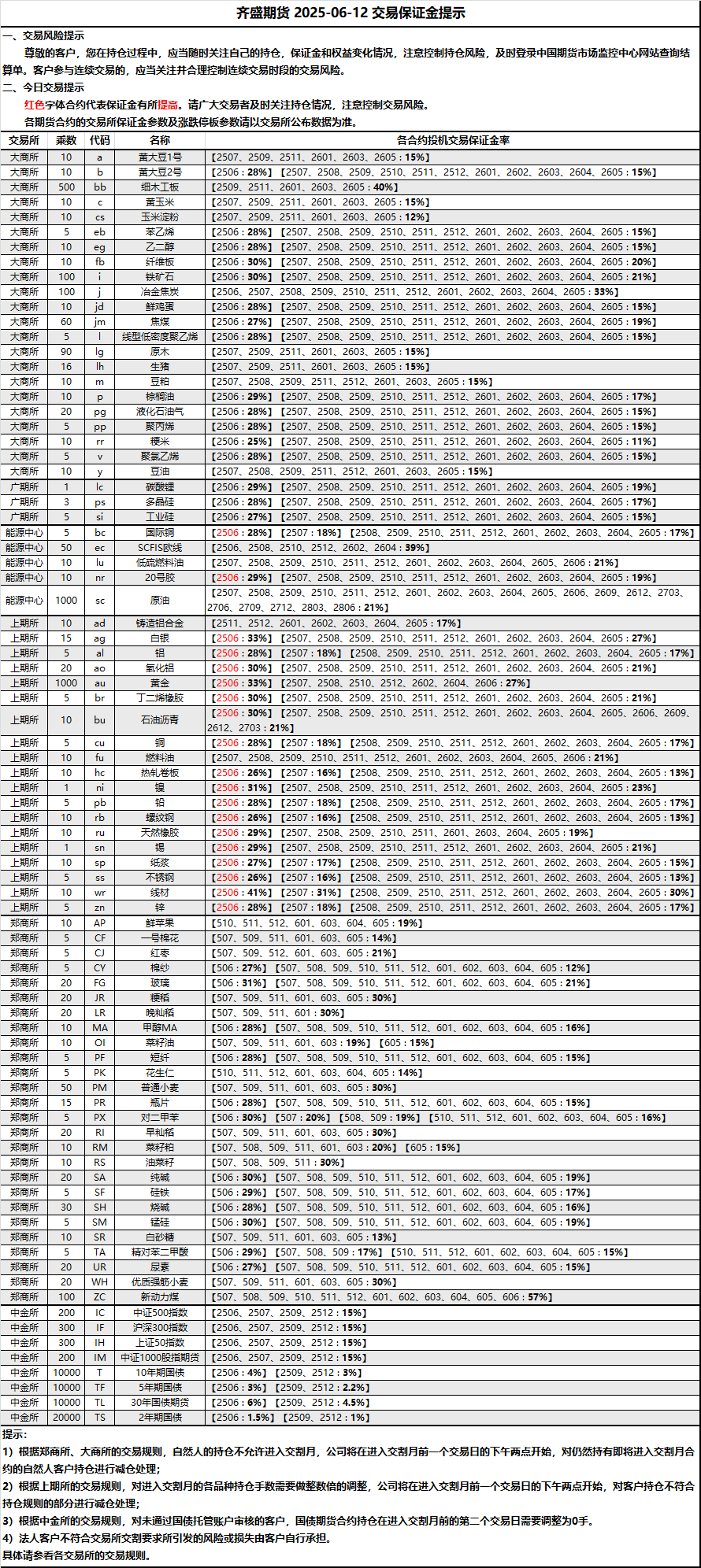 保證金提示