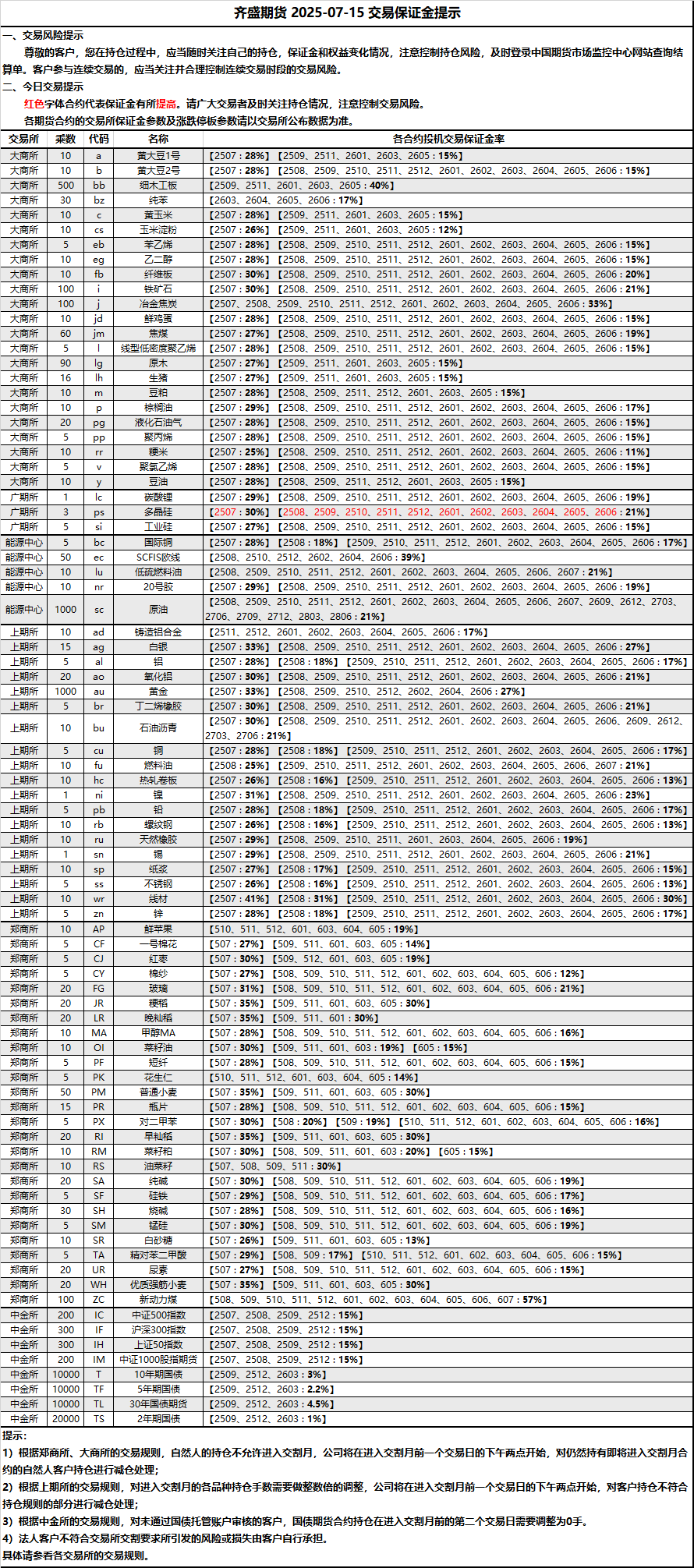 保證金提示