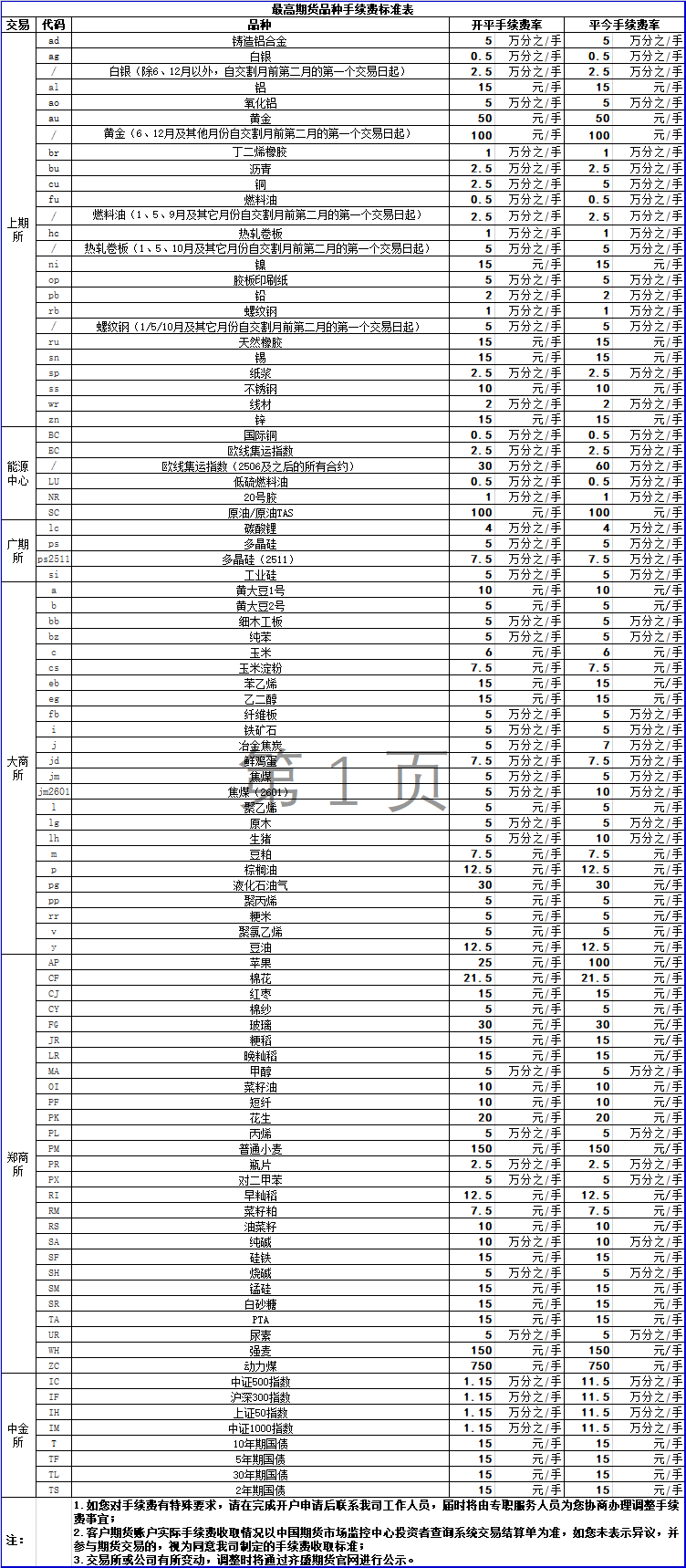 手續(xù)費公示