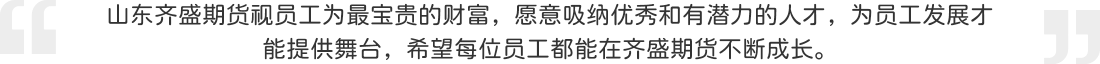 我們崇尚事業(yè)留人:致力于把齊盛期貨的事業(yè)做大,搭建更大的舞臺,為公司內(nèi)部優(yōu)秀人才提供更多成就自我、實現(xiàn)自身價值的機會,同時吸引更多人才加盟;