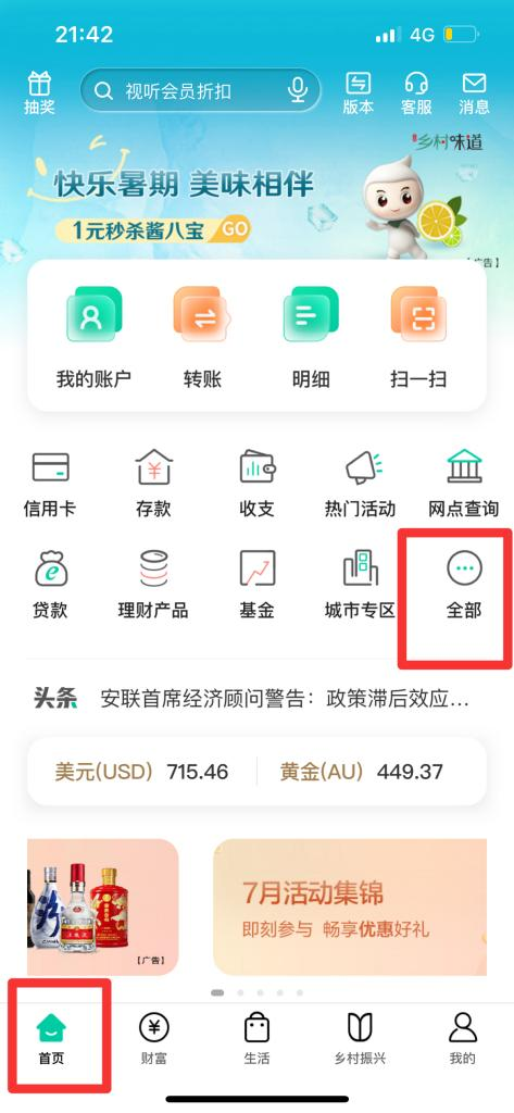 打開(kāi)“中國(guó)農(nóng)業(yè)銀行”手機(jī)APP-首頁(yè)-點(diǎn)擊“全部”