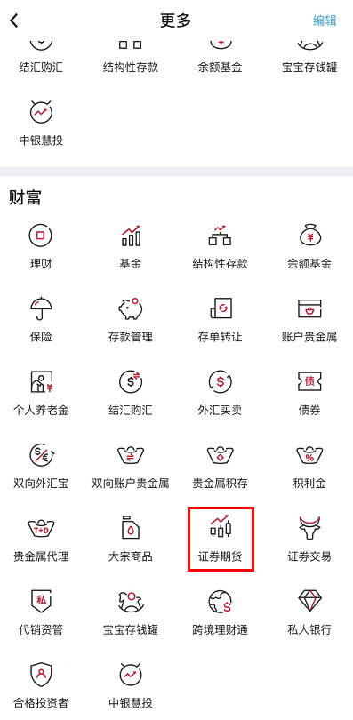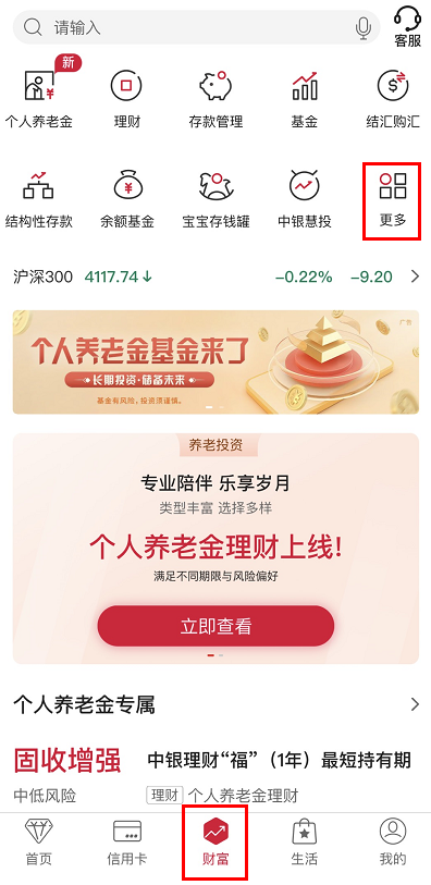 登錄手機銀行,點擊“財富”-“更多”。