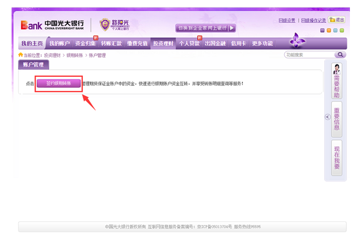 選擇“投資理財-銀期轉(zhuǎn)賬-賬戶管理”。