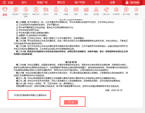 選擇“基金-證券-期貨”-“集中式銀期注冊”。